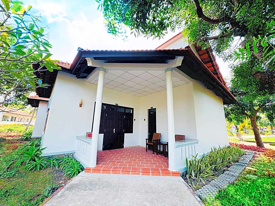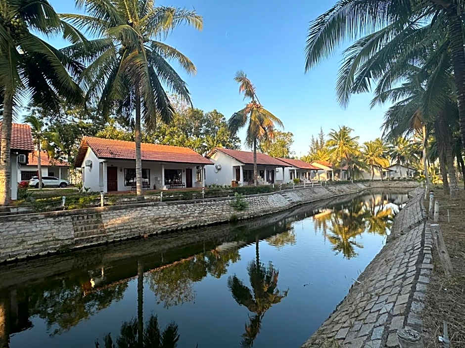 Room features a balcony overlooking the garden or canal.